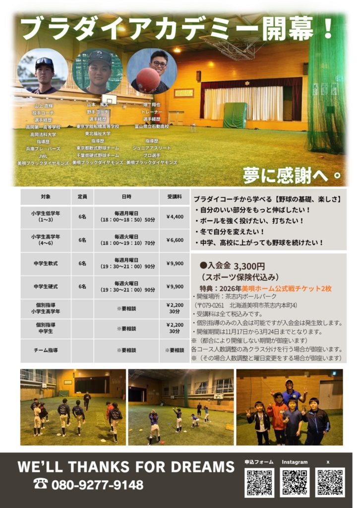 昨年同様美唄ブラックダイヤモンズアカデミーを開催いたします!