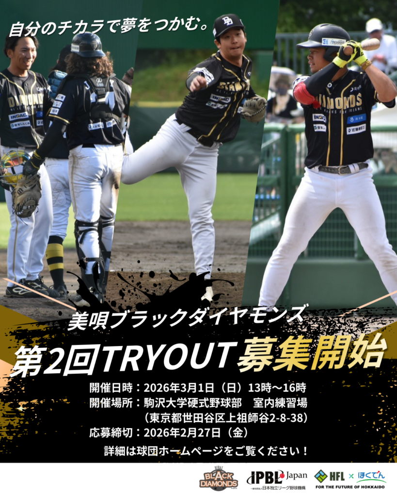 美唄ブラックダイヤモンズ 第2回トライアウト募集開始のお知らせ📢